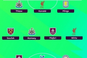 中场:绍切克(西汉姆联)、雅各布·拉姆塞(纽卡)、汉尼拔·梅布里(伯恩利)、维尔茨(利物浦)