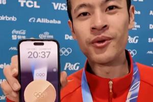 此前宁忠岩接受央视新闻记者采访时,当被问到是什么支撑自己走出低谷,他掏出手机,点亮了手机屏保,那是一张金牌的照片。