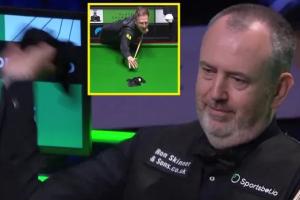 在比赛最后一局,特鲁姆普123-0领先时,马克·为例阿姆斯出人意料地拿起了身边的毛巾,朝球台丢去,毛巾精准命中了特鲁姆普准备击打的白球。特鲁姆普先是一惊,随后作势要隔着毛巾来击打白球,不过比赛在现场观众的笑声中结束。