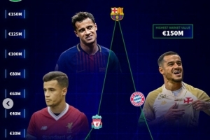 下一篇: 下家在哪?库蒂尼奥生涯身价变化:巅峰1.5亿欧,目前仅剩350万欧