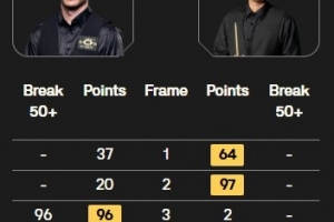 体育资讯12月17日讯 斯诺克苏格兰公开赛64进32轮次,王雨晨4-1击败利索夫斯基晋级32强。