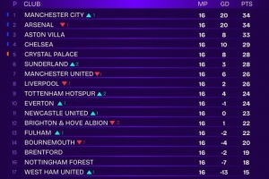 体育资讯12月17日讯 Squawka统计去除VAR判罚错误后的英超积分榜情况,曼城、阿森纳排名前二。