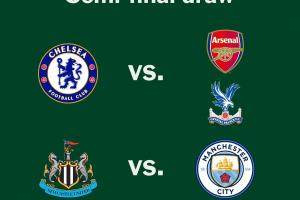 体育资讯12月18日讯 联赛杯半决赛对阵抽签结果出炉,切尔西将对阵阿森纳vs水晶宫的胜者。
