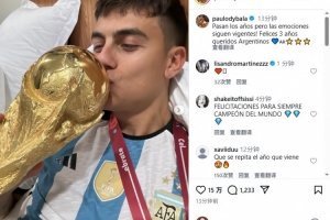 体育资讯12月19日讯 迪巴拉今天更新Instagram,纪念阿根廷世界杯夺冠三周年。