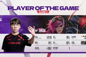 体育资讯12月19日讯 德杯小组赛第二阶段JDG击败WBG扳平比分,Junjia也凭借第二局的亮眼表现斩获重返LPL的首个MVP!
