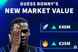 德转也晒出身价更新预热海报,当前身价2300万的博尼将肯定会迎来上涨,最少2500万欧元、最多可能达到4000万欧元。这位22岁的法国中锋在今夏花费了国米2300万欧元转会费,合同2030年到期。