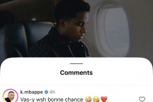 皇马19岁前锋恩德里克租借加盟里昂,姆巴佩在恩德里克的社媒动态下面留言,他写道:“加油,兄弟,祝你好运!”
