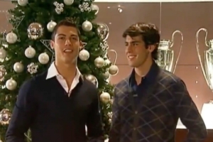 体育资讯12月25日讯 今日是西方传统节日圣诞节,DAZN社媒晒出2009年C罗和卡卡两人一起圣诞视频。