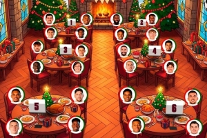圣诞节之际,皇马官方社媒晒出趣味图片,内容为皇马球员圣诞聚餐的场景,并配文:“皇马球迷们圣诞快乐!圣诞大餐,你会选择坐在哪张餐桌呢?”