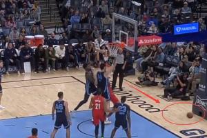 斯普利特直接进场示意想要挑战,但灰熊突然发球直接到前场了