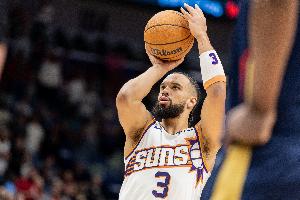 第一节,太阳球员布克和狄龙表现不佳,布克9分钟7投2中,三分2中0、罚球2中1拿到5分3篮板1助攻,正负值-2;