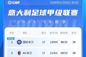 体育资讯01月05日讯 意甲第18轮的比赛已经全部结束,最后一场国米3-1战胜博洛尼亚。