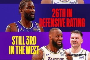 湖人战绩22胜11负,排名西部第三。
