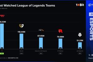 体育资讯1月10日讯 今日外媒统计2025年度英雄联盟战队收视率排名(不包含大陆地区数据),具体如下: