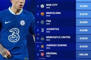 6、纽卡(2022年):1.01亿欧