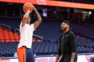体育资讯1月15日讯 安东尼儿子基扬表示,他的父亲几乎每场比赛当天都会飞到雪城,并陪他进行赛前训练。