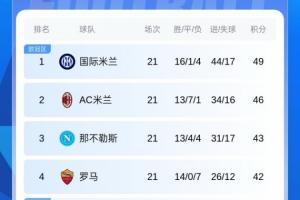 下一篇: 四强争霸!意甲积分:米兰距榜首3分+20轮不败 罗马3连胜紧追前3
