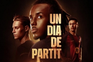 巴萨官方社媒发布了为此役制作的海报,孔德、德容、巴德吉出镜,配文:“欧冠回归。”