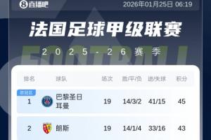 最新的积分榜方面:巴黎时隔多轮再次夺回榜首,目前2分领跑;朗斯本轮不敌马赛跌至第2名,马赛则是继续排名第3。