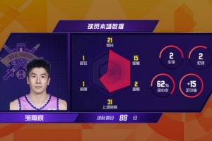 1月24日,常规赛第19轮,北京控股客场88-82战胜北京北汽。北京控股中锋邹雨宸出场32分钟,贡献21分15板,成为本赛季第一位打出20分+15板的国内球员。此外,邹雨宸本场比赛送出2次盖帽,个人生涯总盖帽数来到452次,跻身历史盖帽榜第15位。