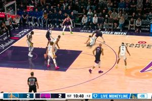 GIF-梅尔顿飞身上篮 波杰姆飞扑抢断赢得球权 科尔叫出暂停