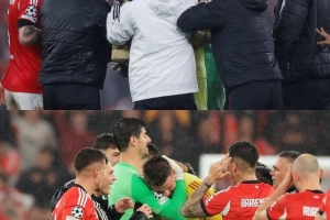 本场比赛本菲卡门将特鲁宾在最后时刻打进关键进球,帮助球队获得附加赛资格。赛后皇马门将库尔图瓦也上前拥抱向特鲁宾表示祝贺。