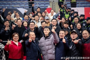 感谢江苏省广西商会“娘家人”的支持,同时还给现场球迷送来了广西特色水果和螺蛳粉,桂风入苏境,苏桂一家亲!
