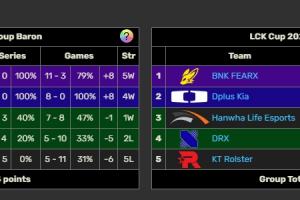 体育资讯1月31日讯 LCK杯超级周T1击败DK,目前远古龙组和大龙组同分,明日如果GEN取胜,则T1、GEN所在的大龙组变为胜者组,DK、HLE所在的远古龙组变为败者组,T1、GEN晋级季后赛,同时BFX由于小分优势排名高于DK,BFX也将晋级季后赛。