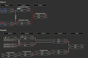 T1、GEN位列胜者组,晋级季后赛第二轮;BFX位列败者组,晋级季后赛首轮。