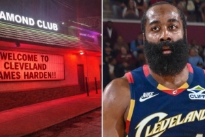 随后,克利夫兰的一家夜店挂出牌子欢迎哈登,上面写着:“欢迎詹姆斯·哈登来到克利夫兰!!”