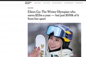 谷爱凌是IMG模特公司的签约模特,并曾为维多利亚的秘密和路易威登等品牌走秀。她的大部分收入来自场外代言并不令人意外,因为随着曝光度的增长速度远超薪资水平,这在大多数女子体育项目中是普遍现象。