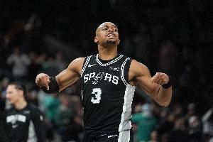 上半场,马刺球员凯尔登·约翰逊高效发挥,替补11分钟7投5中,罚球2中2拿到12分5篮板2助攻1抢断1盖帽,正负值+2。