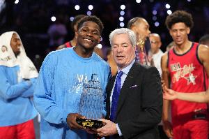 体育资讯2月16日讯 美国新星队47-21击败美国星条队,夺得冠军,赛后,拿下AMVP的爱德华兹接受了媒体采访。