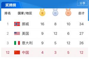 冬奥会最新奖牌榜: